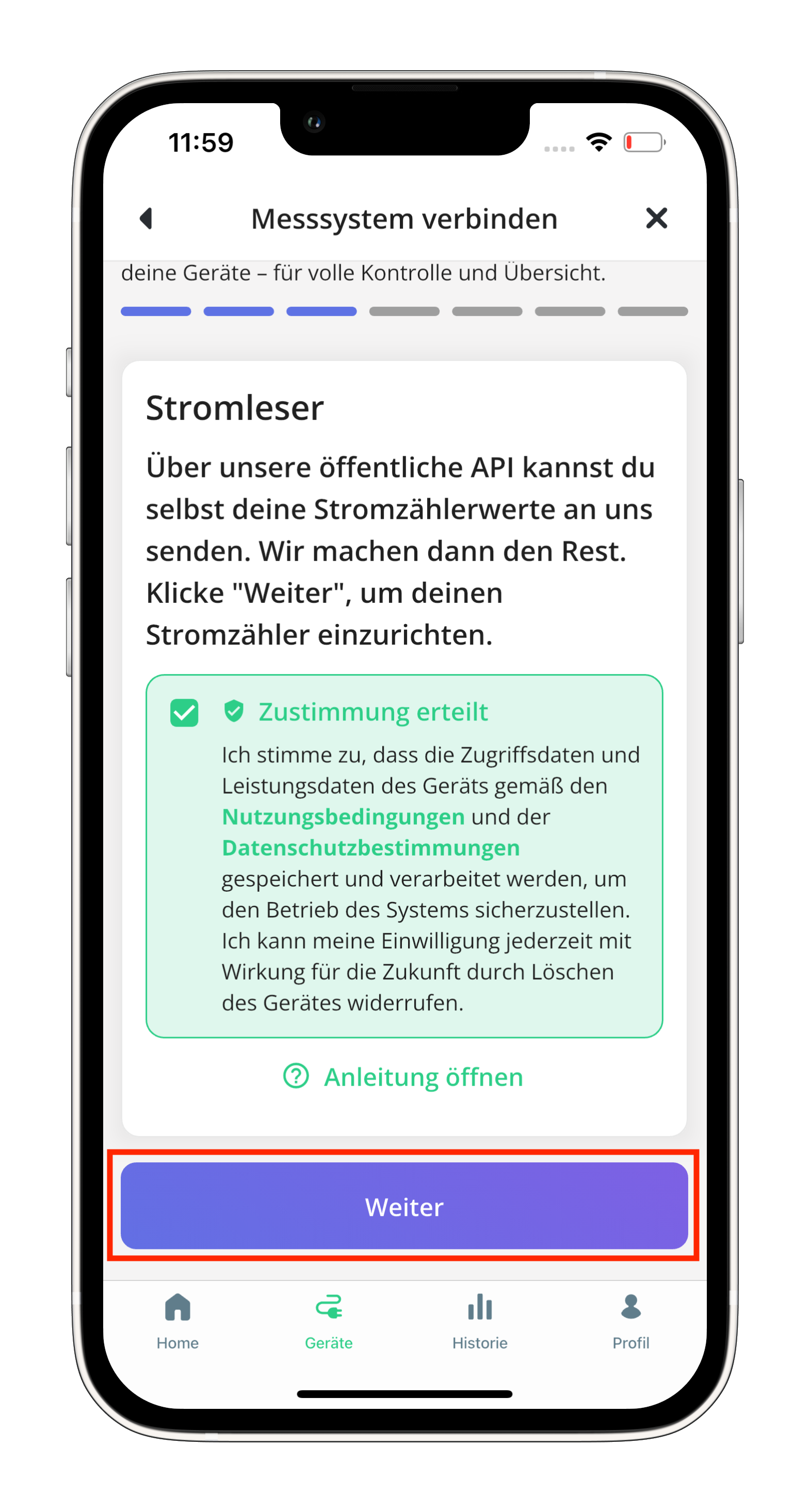 Schritt 6: clever-PV Nutzungsbedingungen akzeptieren