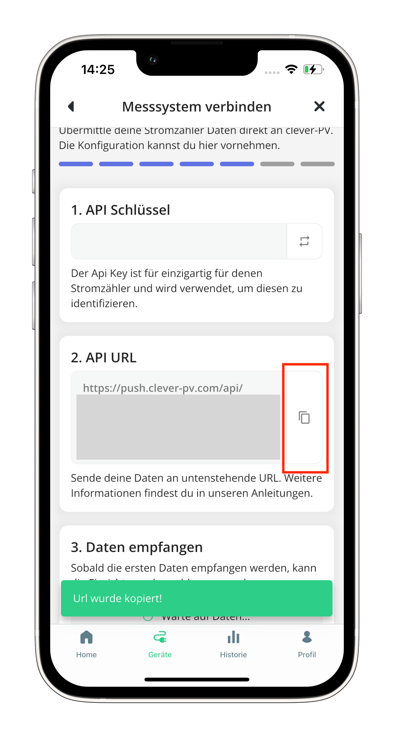 Kopiere den API-Key am besten direkt in die Zwischenablage. Du brauchst ihn im nächsten Schritt in der stromleser-App.