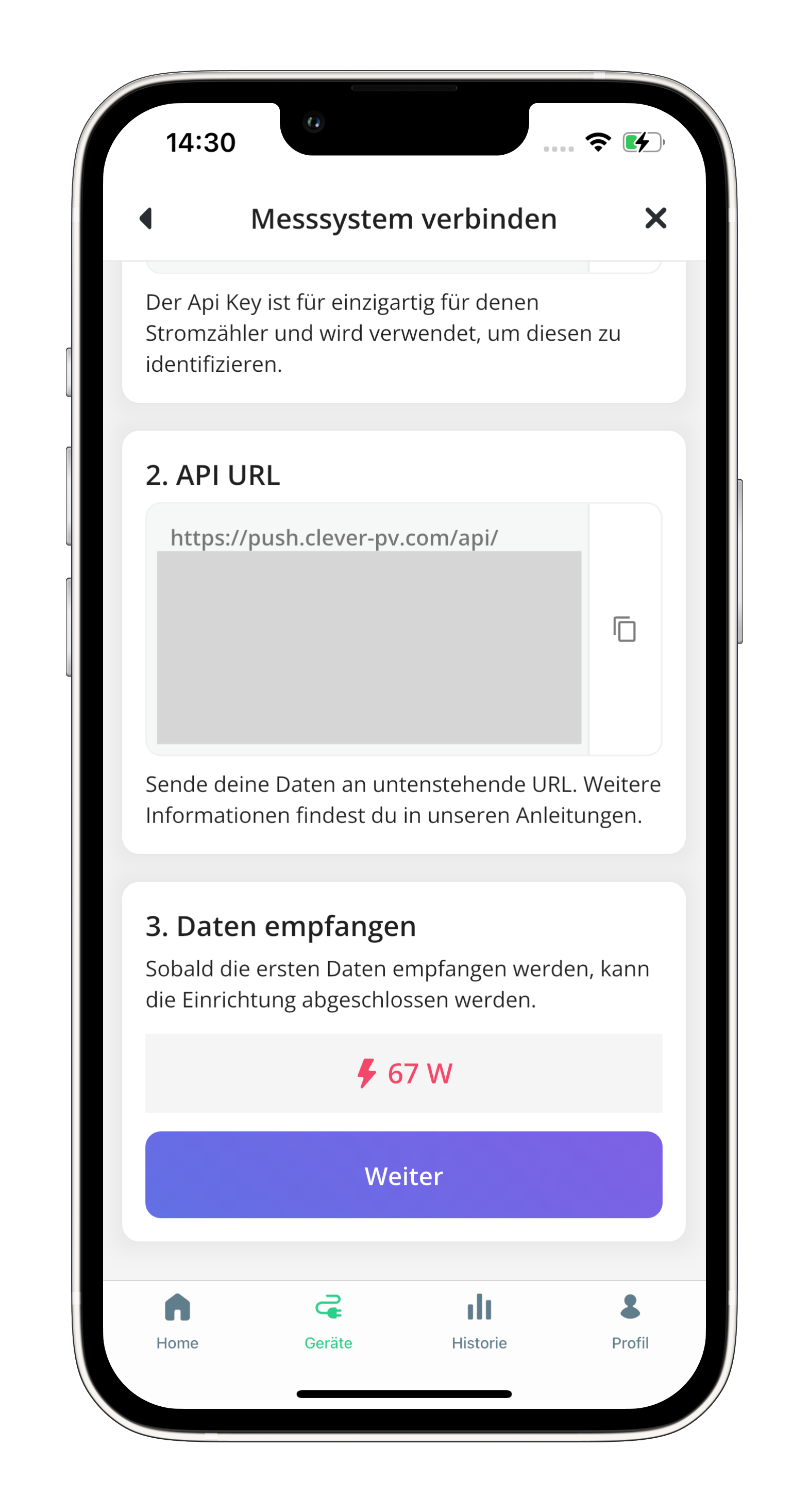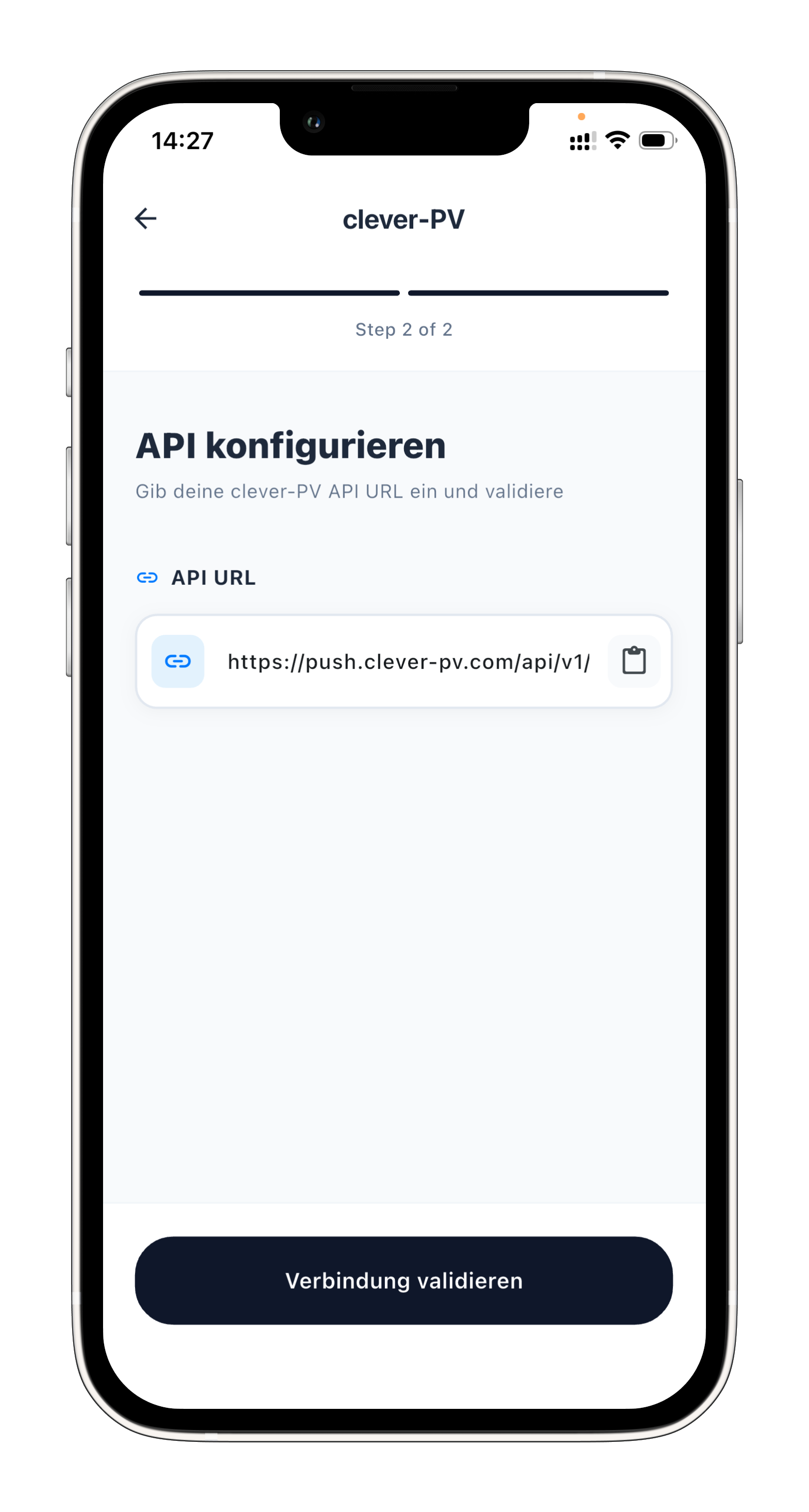 - Füge den Push-API-Key ein, den du vorher in der clever-PV App kopiert hast