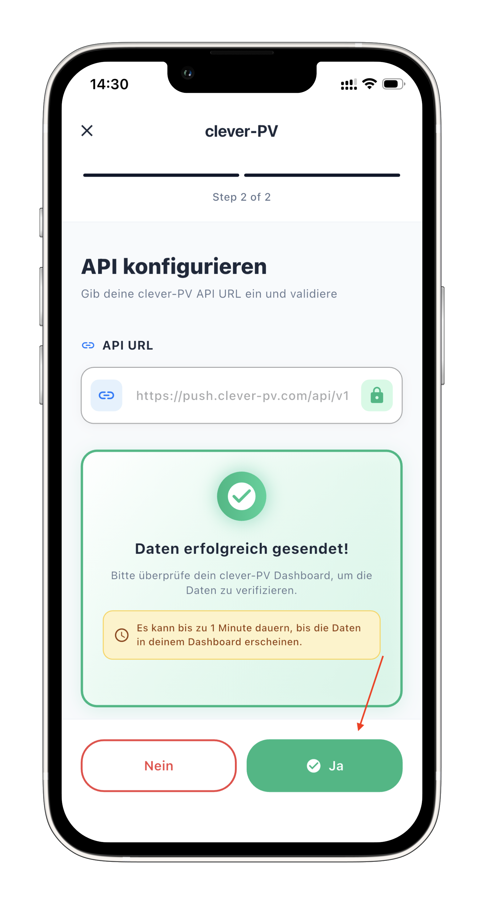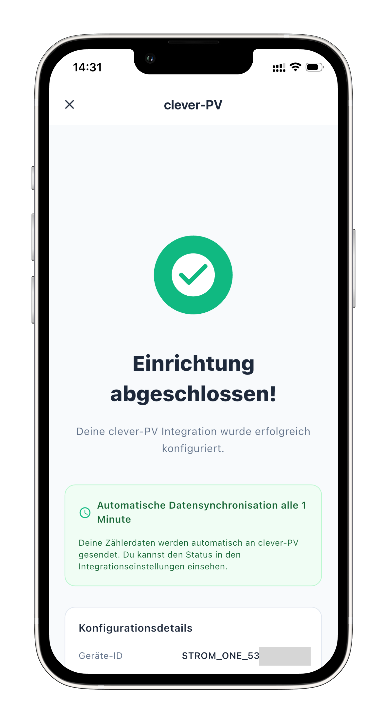 Ab jetzt werden deine Stromverbrauchsdaten jede Minute automatisch an clever-PV gesendet.