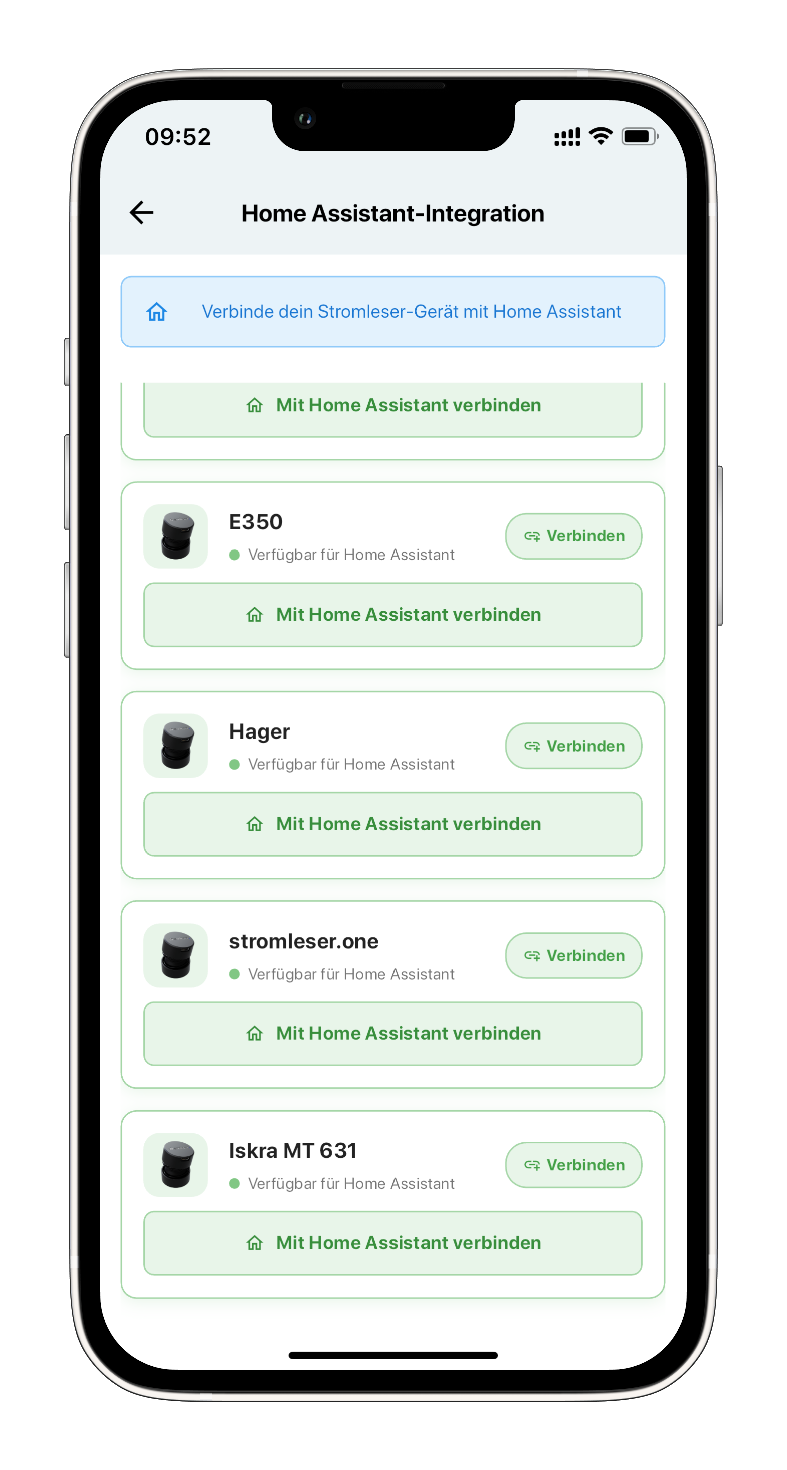 Wähle dein stromleser.one-Gerät aus, das du mit Home Assistant verbinden möchtest.