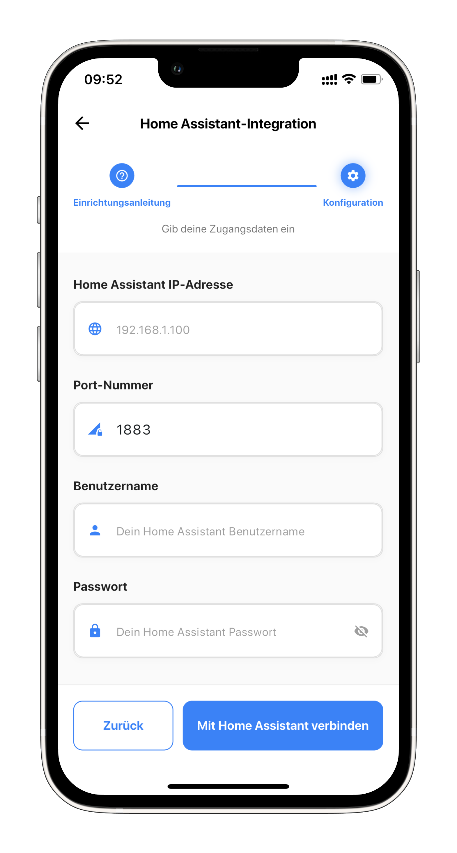 - IP-Adresse: Ihre Home Assistant IP-Adresse